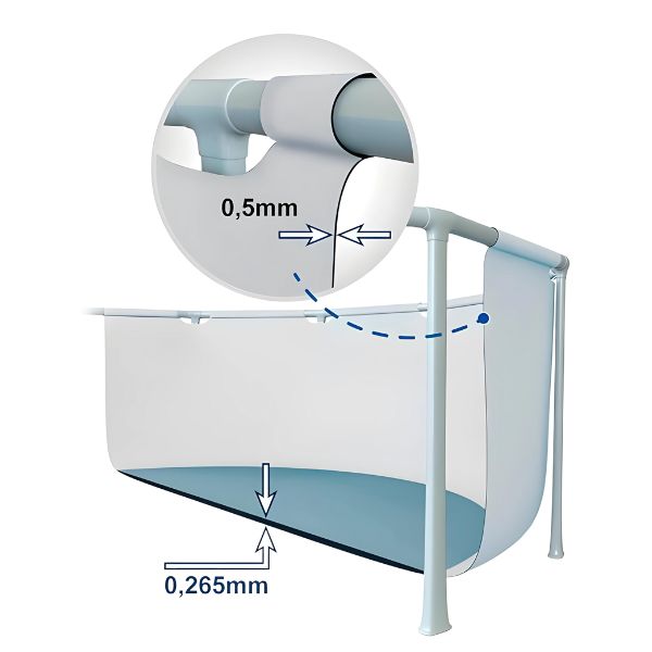 - متانة عالية: مكونة من خامة داخلية مربعة سميكة مكونة من ثلاثة طبقات مقاومة للاختراق، مما يضمن متانة المسبح لسنوات من الاستخدام.